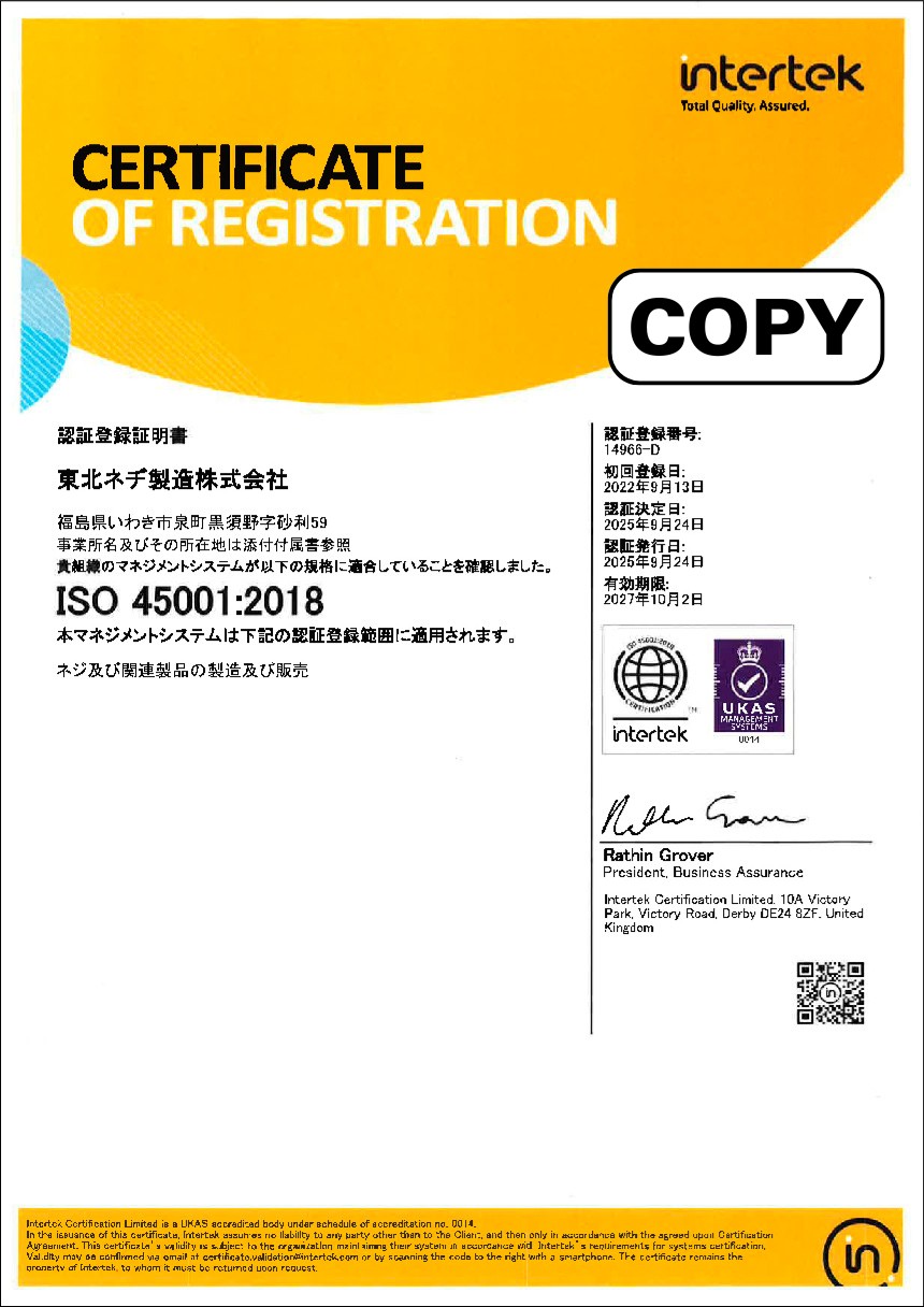 会社名 | 東北ネヂ製造株式会社 |
